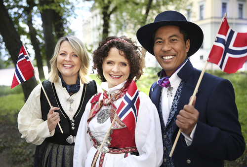 Norge fejrer 17. maj på NRK1, hvor kanalen 'gratulerer med dagen'. Værterne for dagen er Kirsti Falch-Nilsen, Nadia Hasnaoui og Noman Mubashir. ©NRK