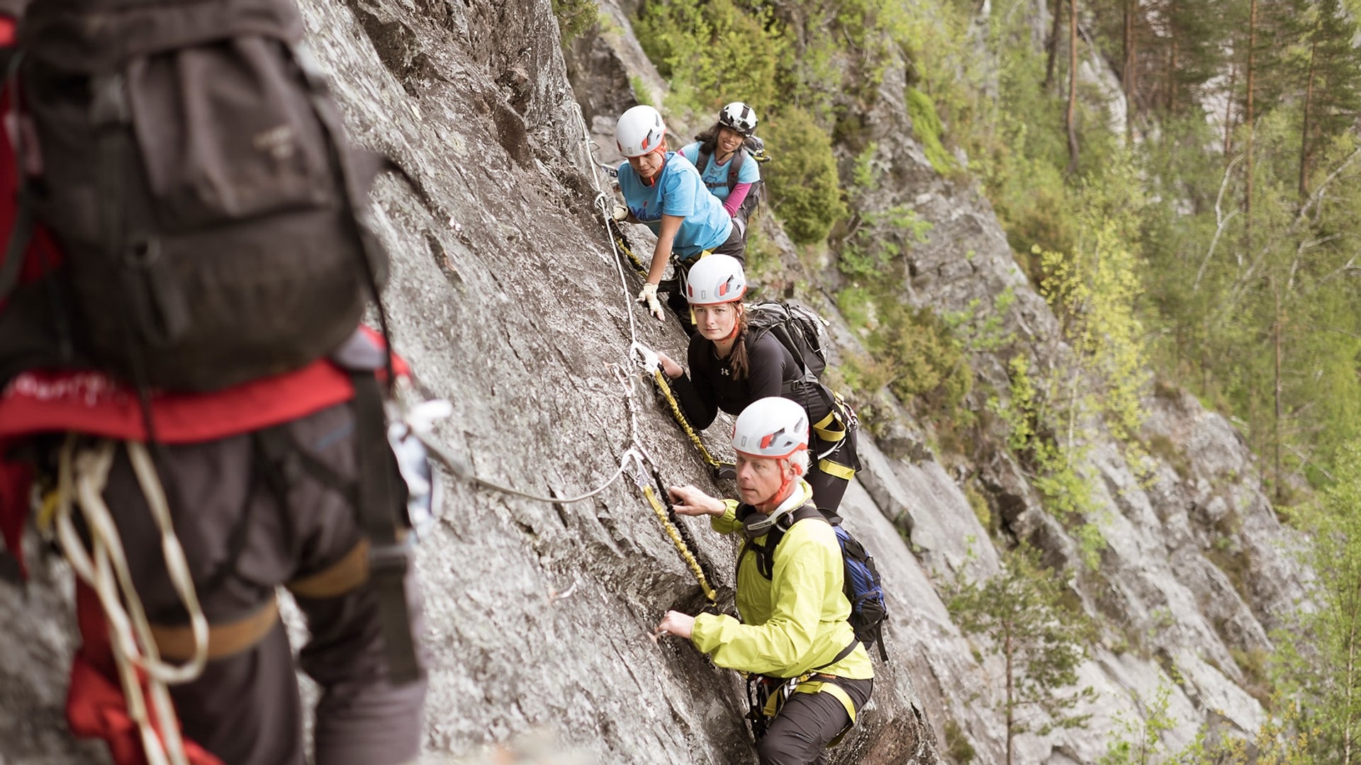 Via Ferrata-ruter. Belønningen er en sejrsfølelse og en fantastisk udsigt. Udfordringen er de stejle klipper og de dirrende lårmuskler. Nordeuropas længste Via Ferrata-rute går op over Straumsfjeldet i Setesdal. Tre nybegyndere har besluttet sig for at tage turen. Med danske undertekster.